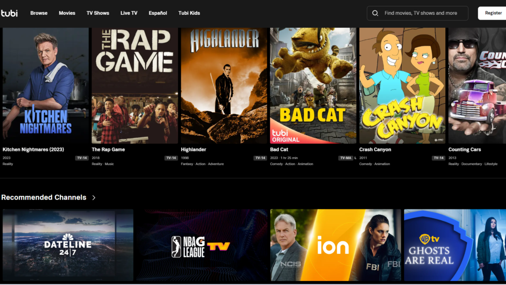 To use TubiTV services, you do not need to register at all! This means you can start watching a variety of content on the streaming website, including documentaries, TV episodes, and movies, all for free, without any hassle of signing up. What’s more, if you have little ones, there’s even a section dedicated to kid-friendly programming, ensuring there’s something for every member of the family.